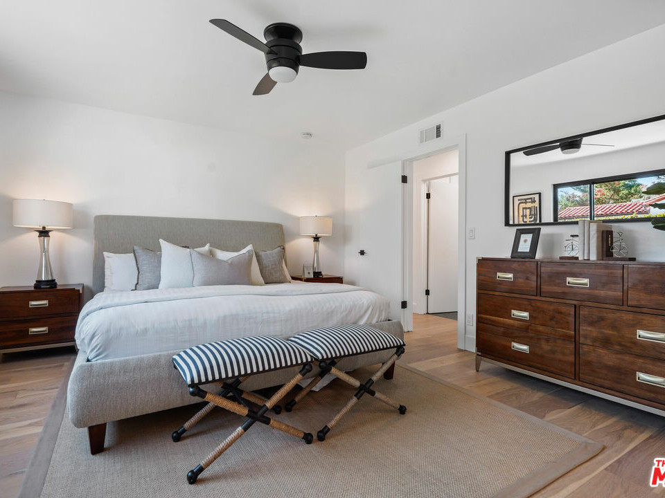 Location! Location! Location at the center of Canoga Park! Upgraded/Remodeled in 2022, one level 3 bed/2 bath house. Cul – De- Sac! Corner Lot! Living space is approx. 1,634 Sq.Ft on 7,502 Sq.Ft of lot size. Modern Mid-Century Style House. Well designed layout. Bedrooms are with walk-in closets. Master suite. Bathrooms’ sleek design. Double vanity in master bedroom. Brand new ”cool” roof. Energy efficient, double pane, large, Milgard windows. Engineered wood flooring. Wide plank. Finished smooth walls and ceilings. Freshly painted interior/exterior. Recessed lighting. New kitchen cabinets, quartz countertops, 34” sink, stove, dishwasher, microwave, garbage disposal. Double door entry leads to enormous dining room with a picturesque view of the rocky Santa Susana Mountains. Cathedral ceiling in living room. That room has direct access to the private, peaceful garden in the back yard. Immaculate landscaping, vine green wall that makes this home even more beautiful. Gas fireplace. Laundry room. Microban Antimicrobial technology door hardware. Central AC/Heating systems with Amazon thermostat. Amazon video door bell. Attached 2 car garage with 50 Amp EV-Charger and brand new garage door. New 200 Amp Main panel. Closed to Woodland Hills on the south, West Hills on the west, Chatsworth on the north. Westfield Topanga Mall and the Village, Warner Center, Costco , 118, 101 Freeways are nearby. Convenient location for hiking in Stoney Park, picnicking/playing tennis in Lanark Recreation Center, or traveling to Malibu Beach. MUST SEE!