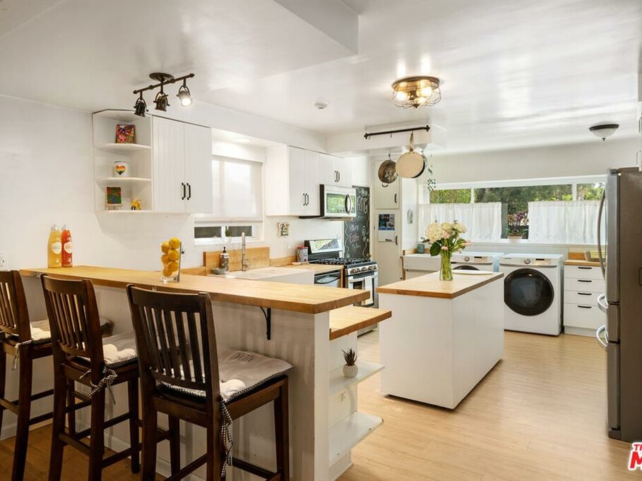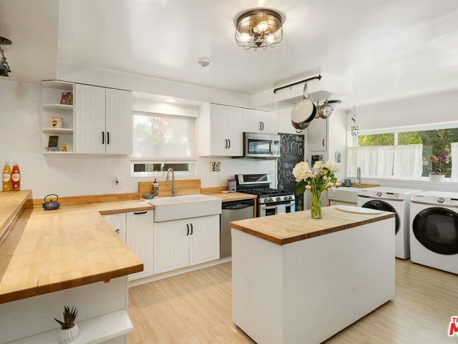 Welcome to this beautifully updated 3 bedroom, 2 bathroom Ranch style home in a desirable neighborhood of Woodland Hills. An open floorplan layout flows from entry through to the farmhouse style kitchen, with butchers’ block counters and island, new flooring throughout to the dining and living room. The sleek, newly remodeled bathrooms complement with bidets and a luxurious jacuzzi tub installed in the primary bath. The home has a new HVAC/duct system installed, and additional upgrades include new water heater, copper plumbing, and double-paned windows with integrated screens. Bonus back family room/art studio, yoga. Enjoy entertaining in the good sized backyard that has been professionally hardscaped with water saving drip hoses/irrigation, and mature foliage throughout. The proximity of the home to great schools, and the Village, Warner Center, Westfield Topanga, The Commons at Calabasas, The Fallbrook Center with shopping and all the restaurants and amenities that accompany these areas make this home a dream!