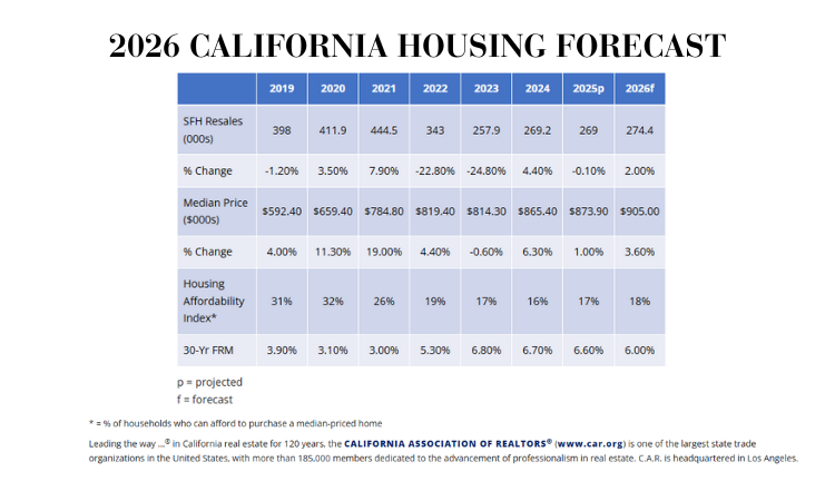 *Source: C.A.R. releases its 2026 California Housing Market Forecast